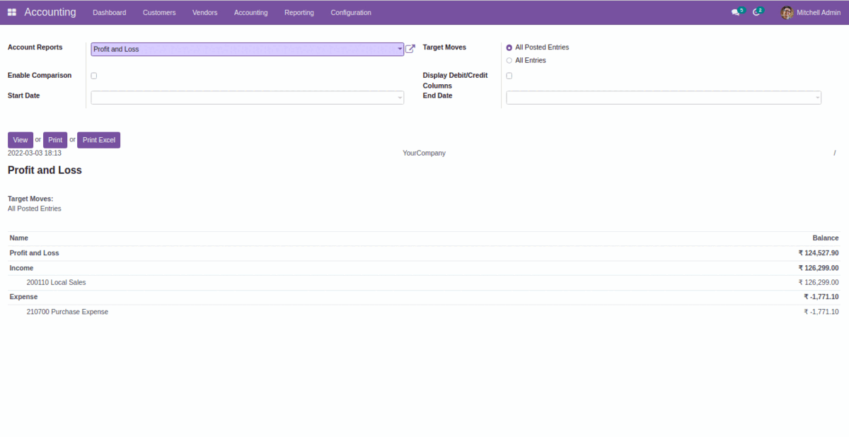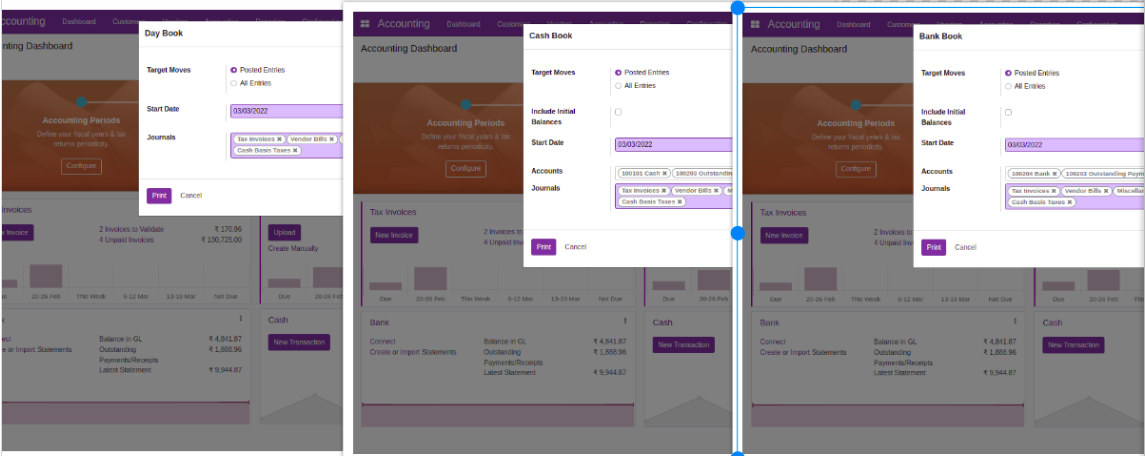 Balance Sheet, Profit and Loss, Partner Ledger,