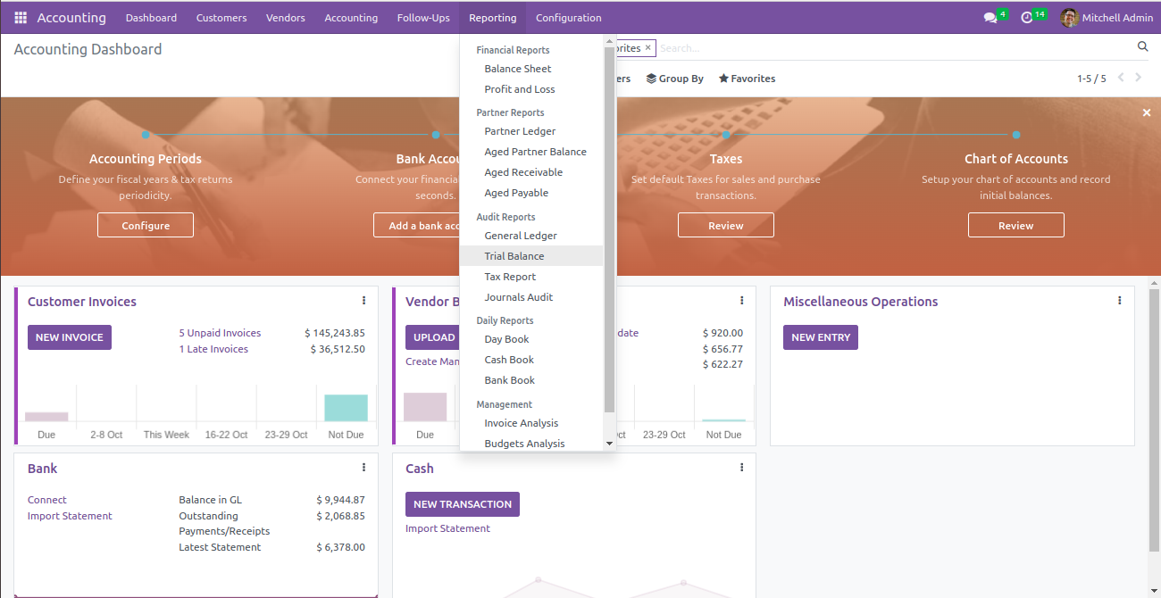 Aged Partner Balance, Aged Receivable, Aged Payable, General Ledger,