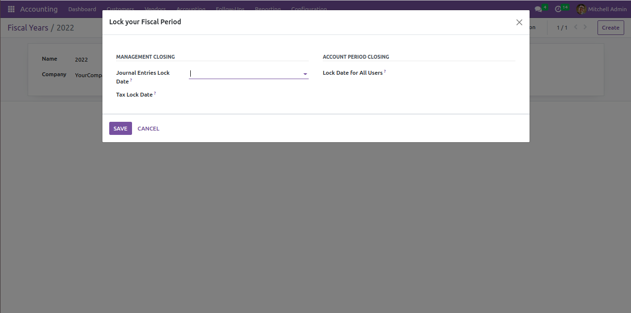 Manage fiscal years and year ending by setting lock dates